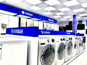 محصولات فروشگاه در بخش لوازم خانگی بزرگ شامل یخچال و فریزر، ماشین لباسشویی، ماشین ظرفشویی، اجاق گاز و انواع تلویزیون در مدل ها و ظرفیت های مختلف در دسترس مشتریان قرار گرفته است. همچنین لوازم خانگی کوچک از جمله چای ساز، تستر، گوشت کوب برقی، آبمیوه گیری، اسپرسوساز و بخارگر، انتخاب های کاربردی برای استفاده روزمره هستند. در کنار این محصولات انواع تجهیزات گرمایشی و سرمایشی مانند بخاری برقی و گازی، کولر و هیتر نیز ارائه می گردد. تمامی کالاها از برندهای معتبری همچون اسنوا، دوو، بوش، فیلیپس، کنوود، پارسخزر و آبسال عرضه می شود.